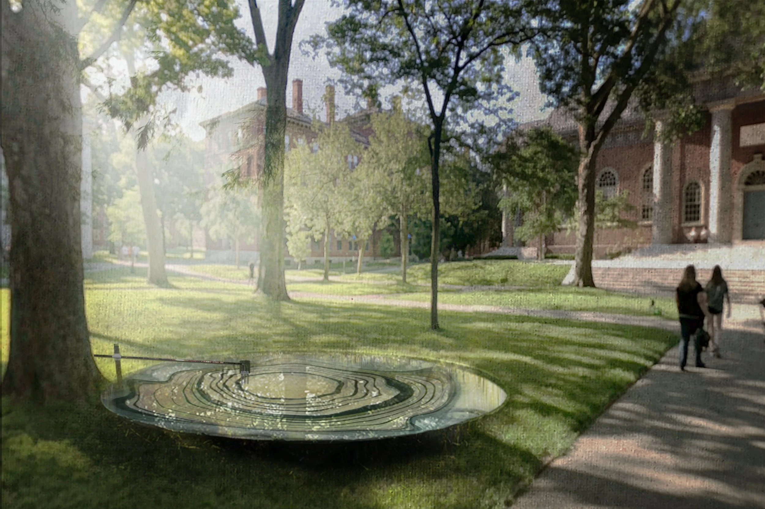 2022 Assembly is an interactive installation tracing the temporal dimension of Harvard Yard. Passersby's movement will be recorded as color drops through marbling, creating a tree-ring-shaped pattern, which represents the correspondence in the environment. At the end of the exhibition, it will be assembled into a stack, which becomes a spatial embodiment of time. By capturing the transience, the semi-transparent piece makes the space around resonate and offers an interpretive experience for graduates and visitors.
