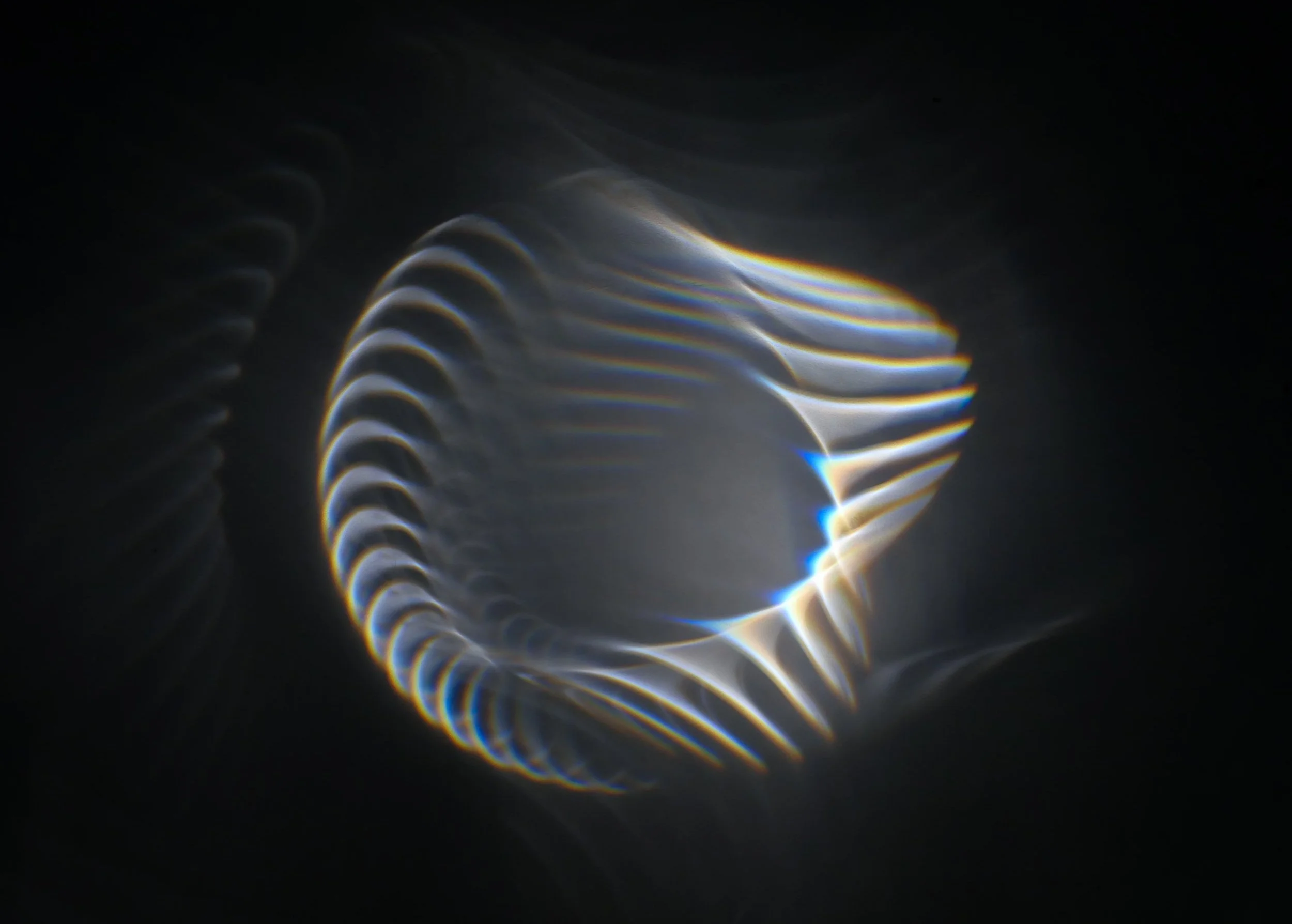 Through the refraction and reflection of the lenses, the light forms a phantom-like image. The spectrum is constantly deconstructed and reorganized, and light and dark alternate. In the continuous cycle, the change of light seems to form its own life, as if a living body carrying out its life cycle. Every moment in its life displays an ever-changing, amorphous composition, always in motion. the non-living entity is recording a kind of passing. It holds a metaphor for life that everything is flowing, nothing is permanent.
