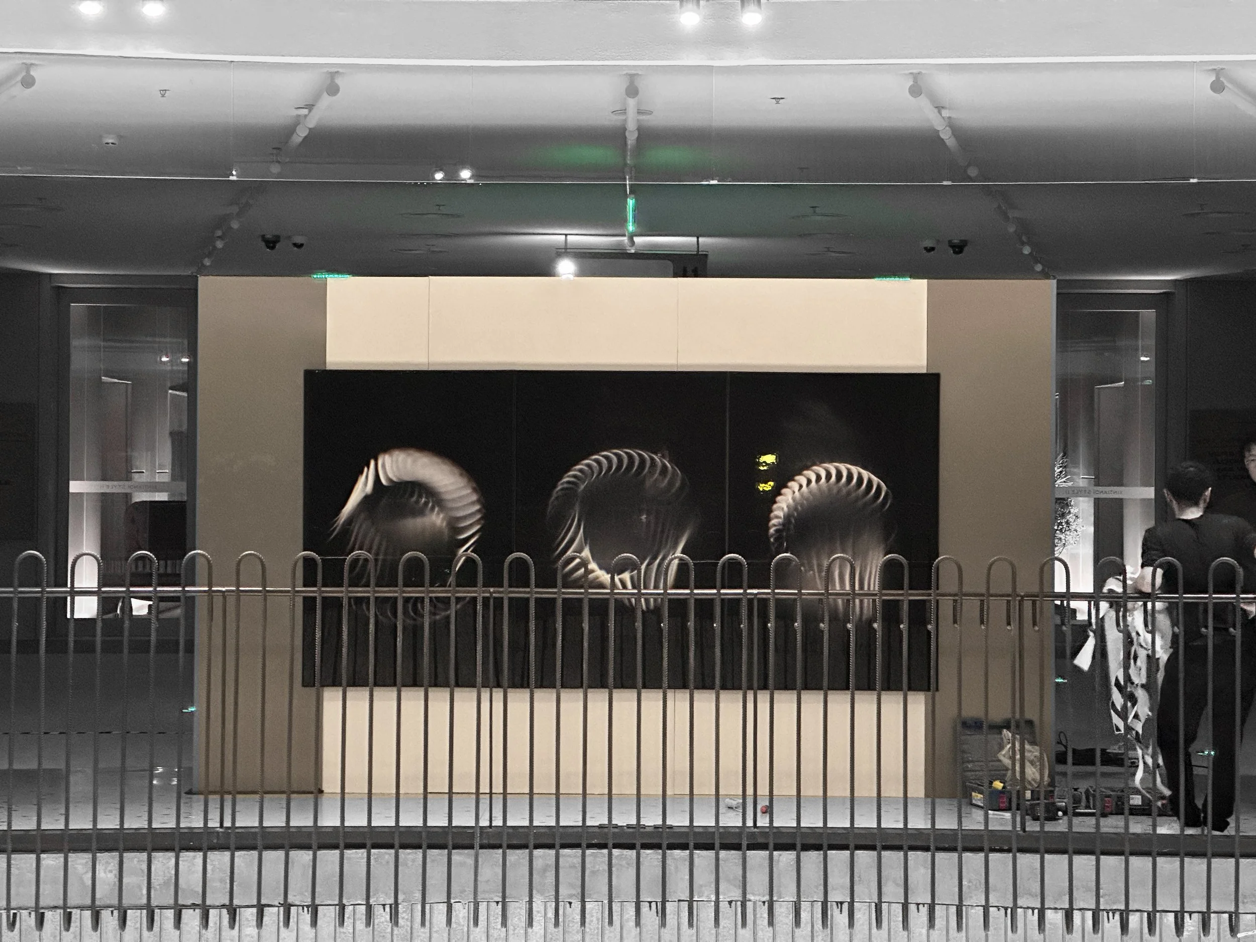装置通过旋转使光产生曼妙的折射,每时每刻 都构筑着一个新的光影图像。仿佛一个生命体 在进行着自己的生命循环,它像生命一样有周期、有变化、有黑暗也有光明,在它生命周期 里的每一刻都变化万千,又终究回到循环的宿命中。它依旧在记录着一种流逝,一切皆流,无物常驻。